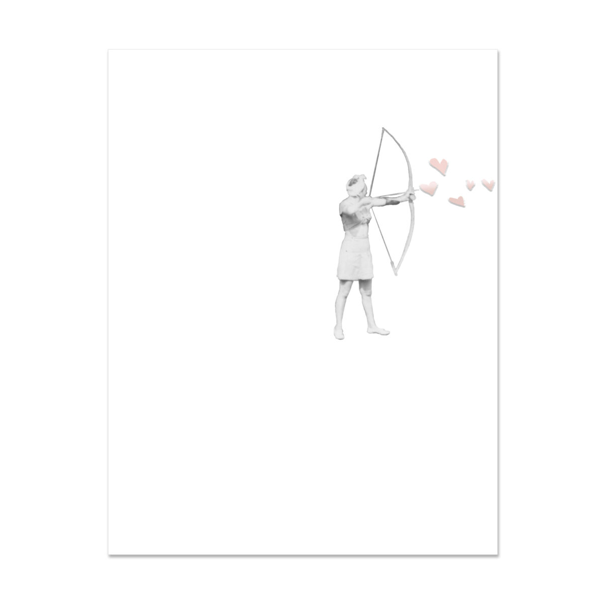 Front depicts archer shooting metallic rose gold hearts.