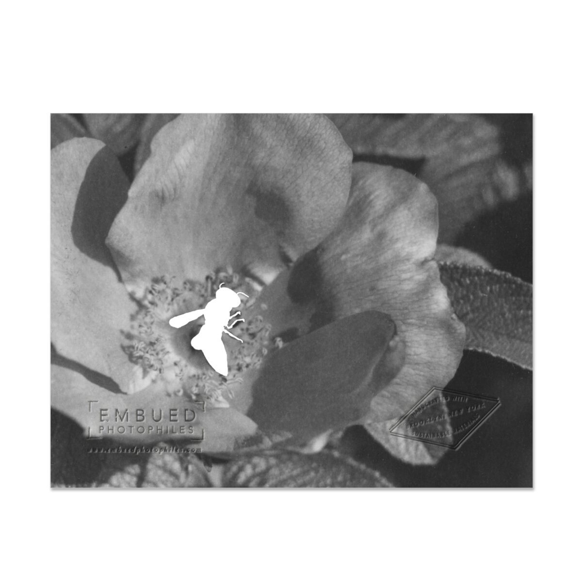 Foil stamped 100% post-consumer white card stock / white envelope