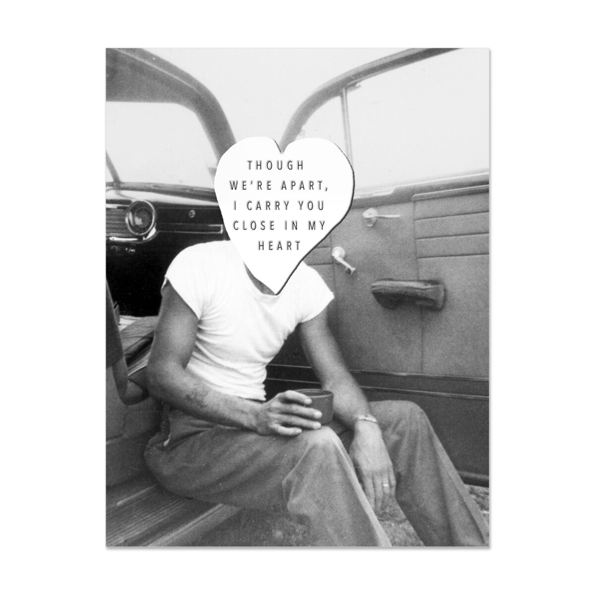 Front reads : THOUGH WE’RE APART, I CARRY YOU CLOSE IN MY HEART