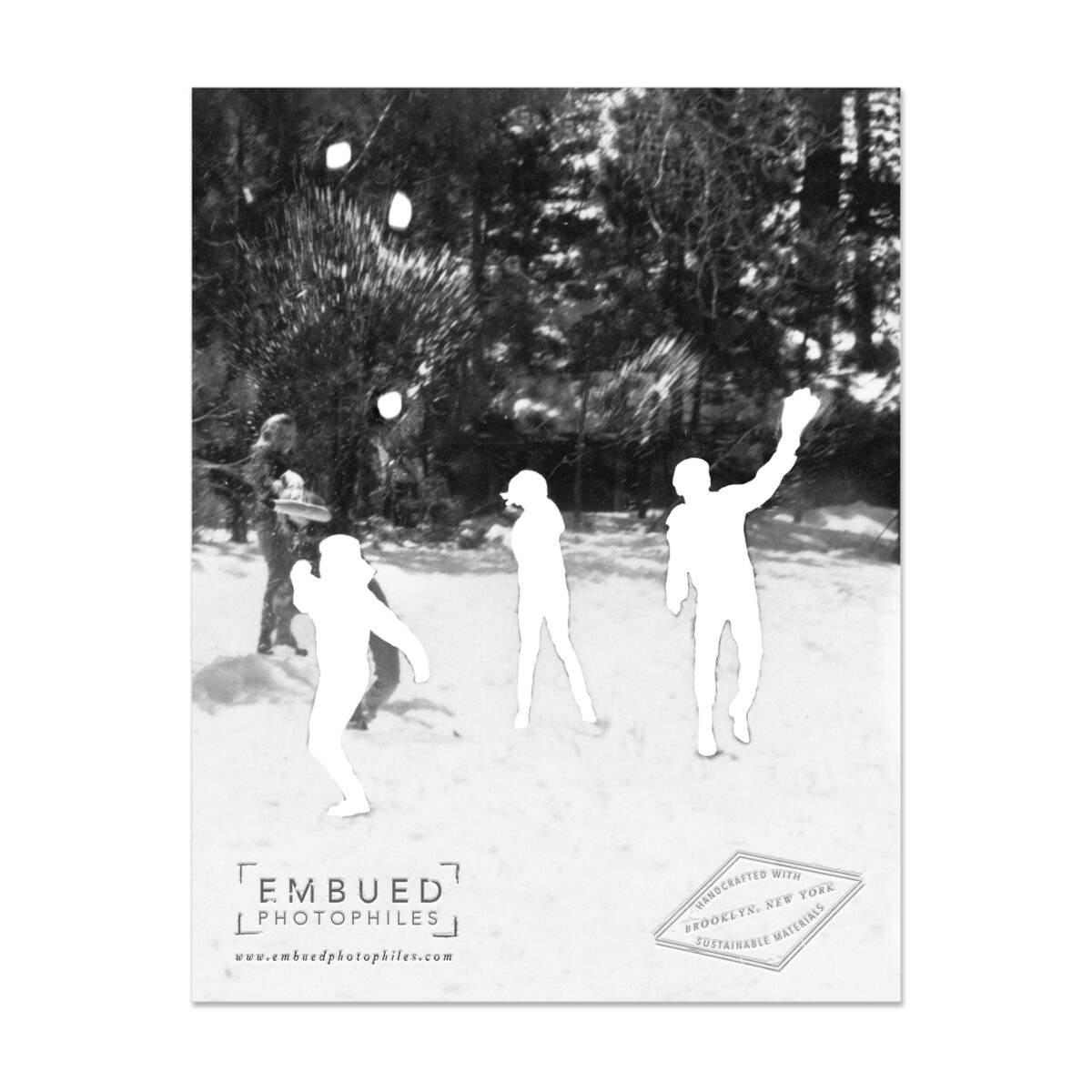 Text and snowballs embossed (blind impression).